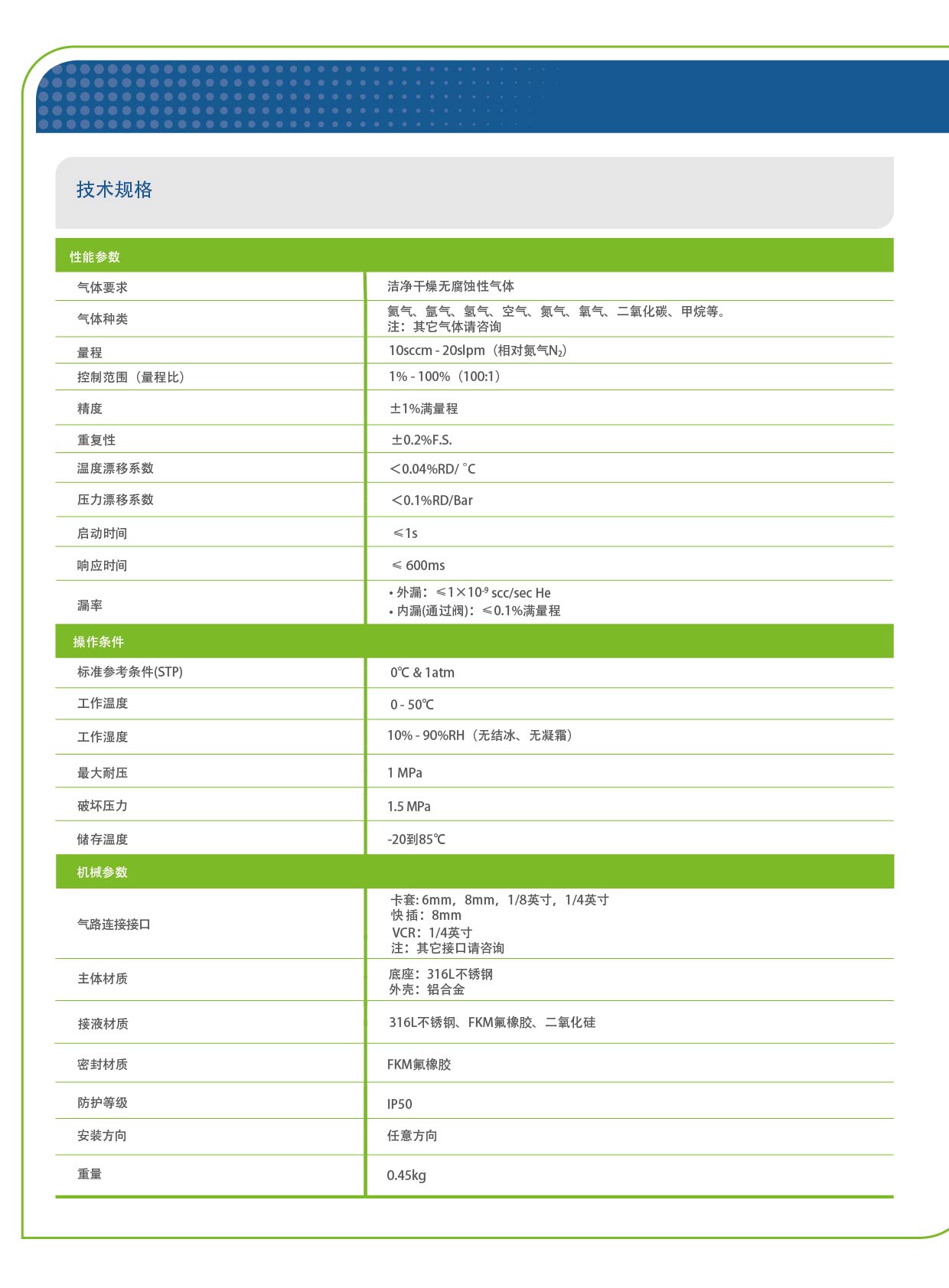 量程 10 SCCM - 20 SLPM,±1 % 滿量程精度,優于 600 ms 響應時間