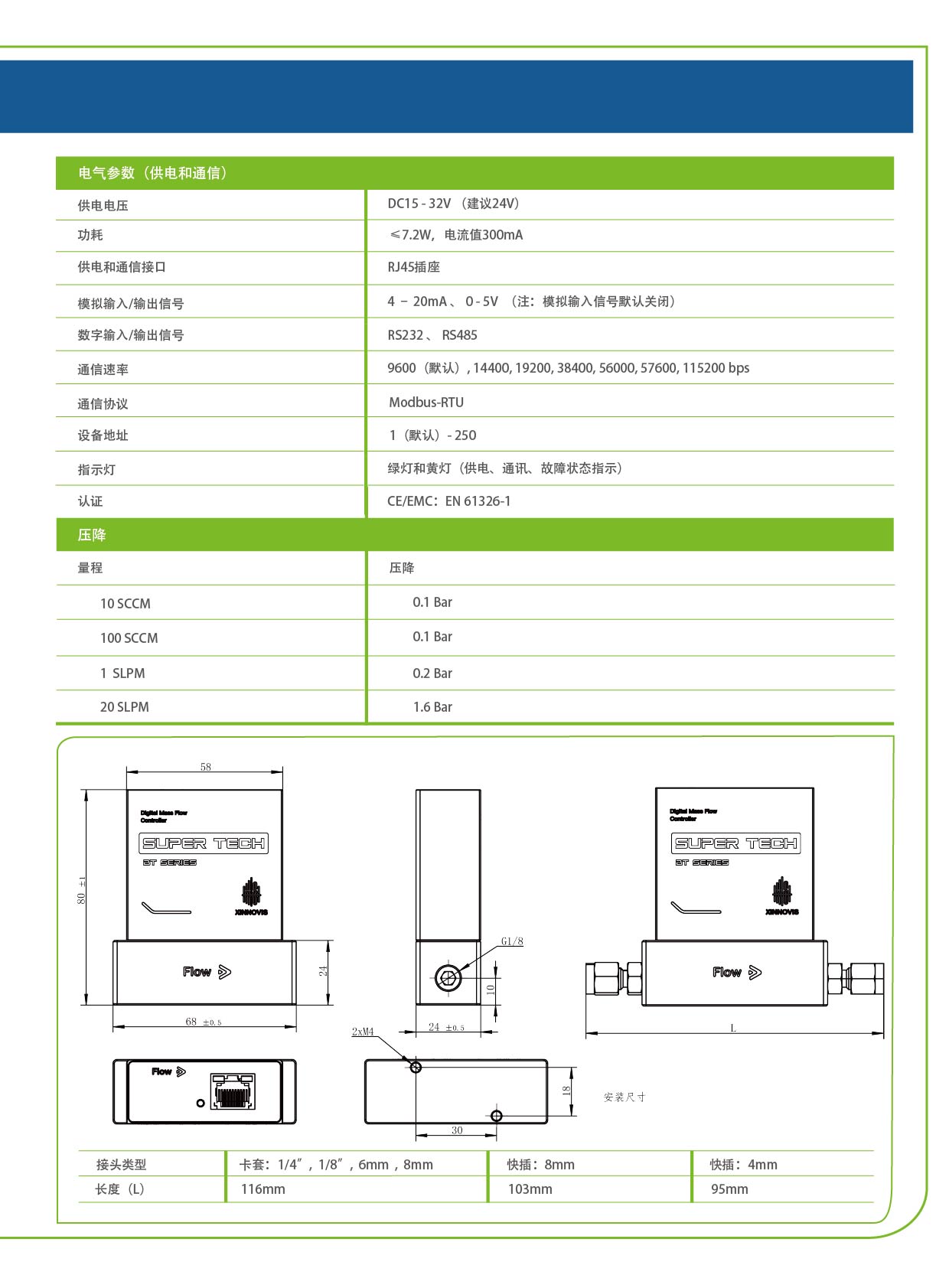 SUPERTECH BT系列質量流量控制器是最新一代工業微機電的產品,采用基于微機電系統(MEMS)的流量傳感器,適用于廣泛的氣體流量精密測量領域。